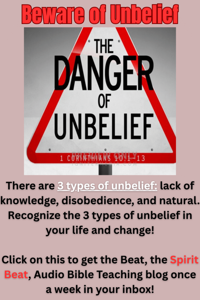 There are three types of unbelief: lack of knowledge, disobedience, and natural. Recognize the 3 types of unbelief in your life and change!